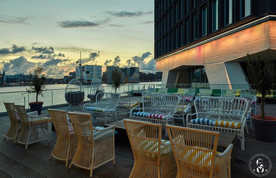Pre-opening van nóg een iconisch hotel in de A’DAM toren aan het Amsterdams IJ-kanaal uitkijkend op het Centraal Station